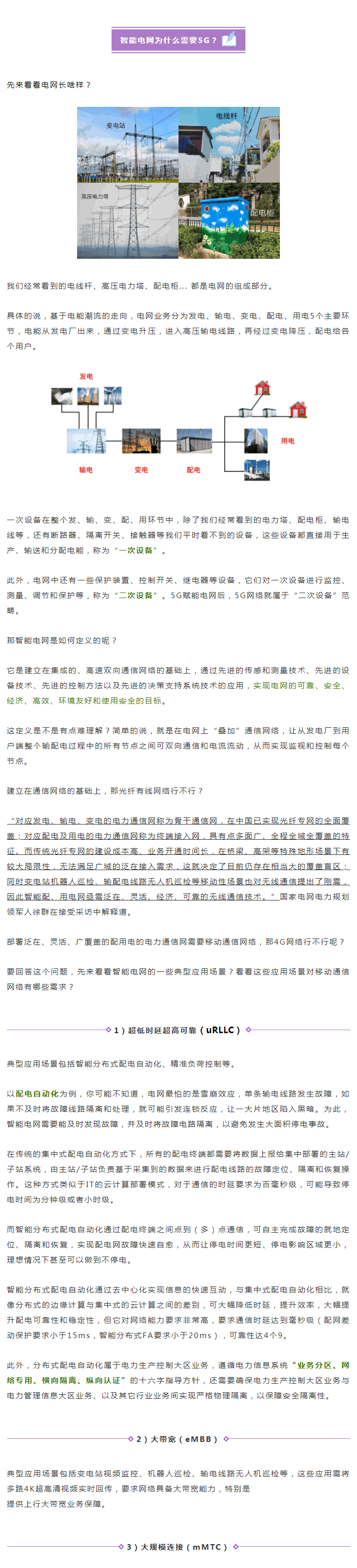 青島5G智能電網(wǎng)項(xiàng)目采用端到端5G SA網(wǎng)絡(luò)建設(shè),引入5G全自動多維動態(tài)切片解決方案,結(jié)合5G MEC無處不在的聯(lián)接能力和超性能異構(gòu)計算能力,為電網(wǎng)應(yīng)用提供更快、更細(xì)、更準(zhǔn)的差異化和確定性網(wǎng)絡(luò)能力,實(shí)現(xiàn)了基于5G SA切片的智能分布式配電、變電站作業(yè)監(jiān)護(hù)及電網(wǎng)態(tài)勢感知、5G基站削峰填谷供電等新應(yīng)用。工作人員通過電力塔桿上的5G+4K超G清攝像頭來監(jiān)控輸電線路和配電設(shè)施,可以及時發(fā)現(xiàn)故障隱患,能節(jié)省80%的現(xiàn)場巡檢人力物力。借助5G的超低時延和超G可靠性,還能快速定位、隔離和恢復(fù)電網(wǎng)線路故障,把停電時間從分鐘級縮短到秒級甚至毫秒級。